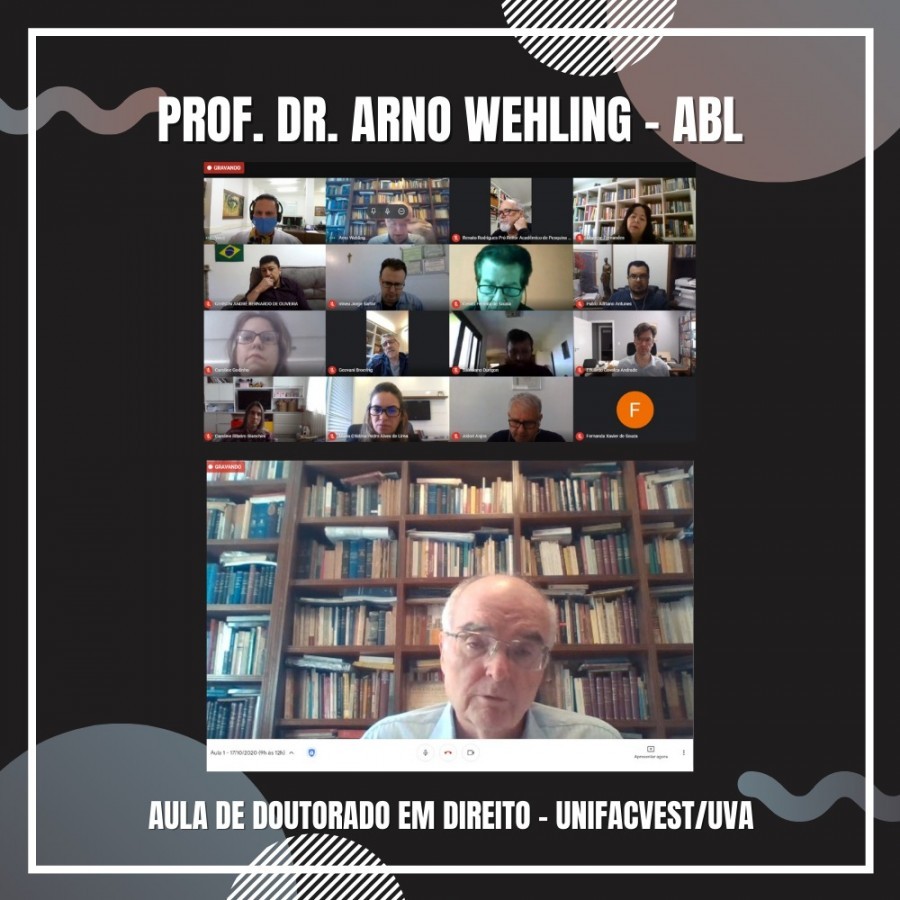 Doutorado em Direito tem aula com o Prof. Dr. Arno Wehling, imortal da Academia Brasileira de Letras, com a disciplina Instituições Político-Jurídicas Brasileiras. A aula remota é gerada a partir da cidade do Rio de Janeiro.