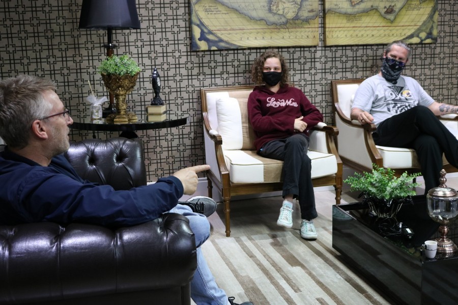 Legenda das imagens: Reitor Geovani Broering em audiência com o candidato Professor Ed (Psol) e a candidata a vereadora, Chaiane Susin