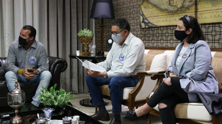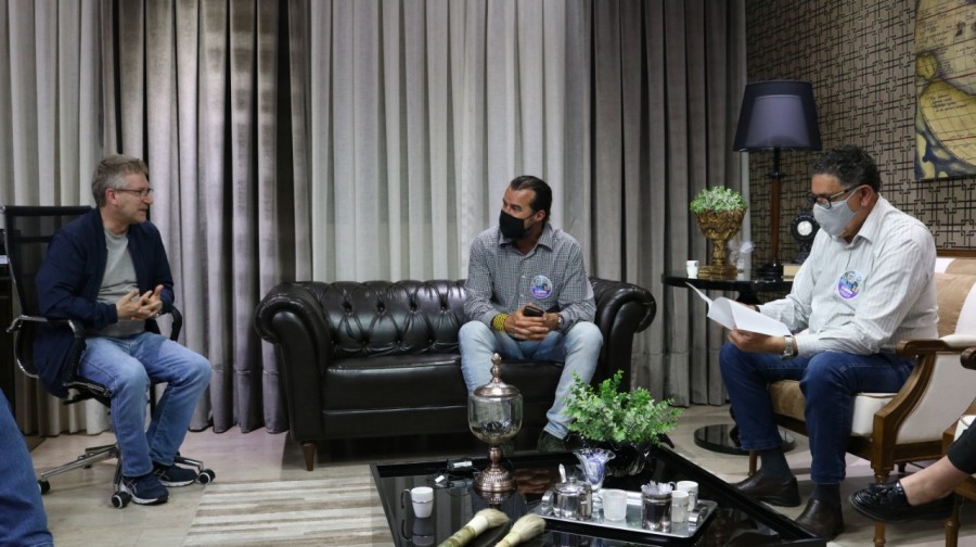 Legenda das imagens: Reitor Geovani Broering em audiência com o candidato Cleimon Dias (PT), Domingos Valente candidato a vice a Evellyn Schulze, assessora de comunicação