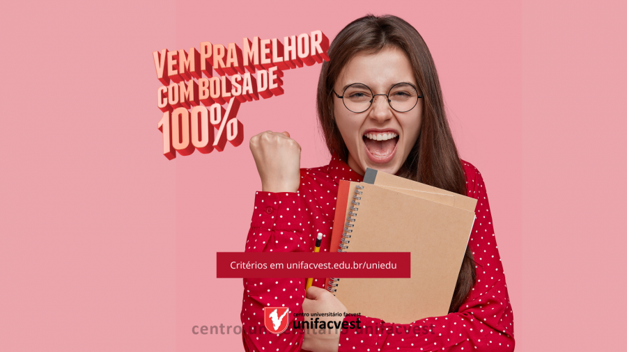 Bolsa de 100% para todo o curso. Você paga a taxa de R$150,00 da matrícula, inscreve-se no Uniedu e faz o curso dos seus sonhos de graça. Mas corre, válido para matrículas feitas diretamente na Unifacvest e até o preenchimento das vagas. Para primeiras fases dos cursos Presenciais em Lages - SC. Início das aulas em 09/08/2021.