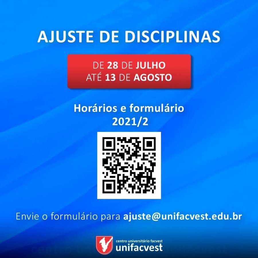 Já está disponível o horário de 2021/2 sem as primeiras fases e o formulário para o ajuste de disciplinas. Lembrando que não poderá haver choques de disciplinas, exceto para TCC 1 e 2.