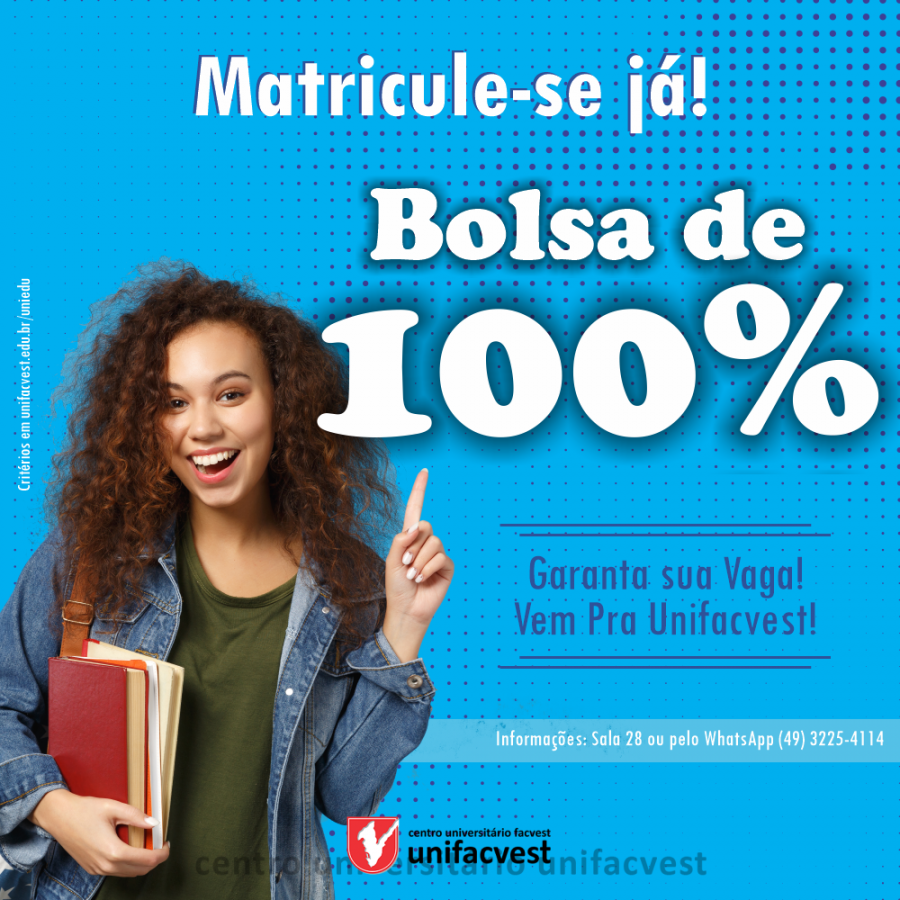 Bolsa de 100% para estudantes de escola pública residentes em Santa Catarina.