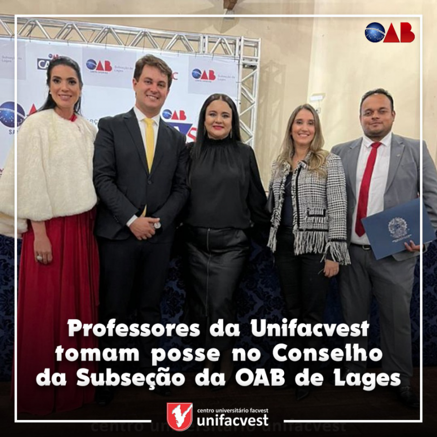 A cerimônia de Posse da nova presidência do Conselho da 4ª Subseção da OAB de Lages para o novo triênio, foi realizada no dia 1º de abril. Na solenidade foram empossados, o novo Presidente, Marco Antônio Arruda, aluno do Mestrado e Doutorado da Unifacvest e os professores da instituição Larissa Wojcik e Diego Espinoza como conselheiros.