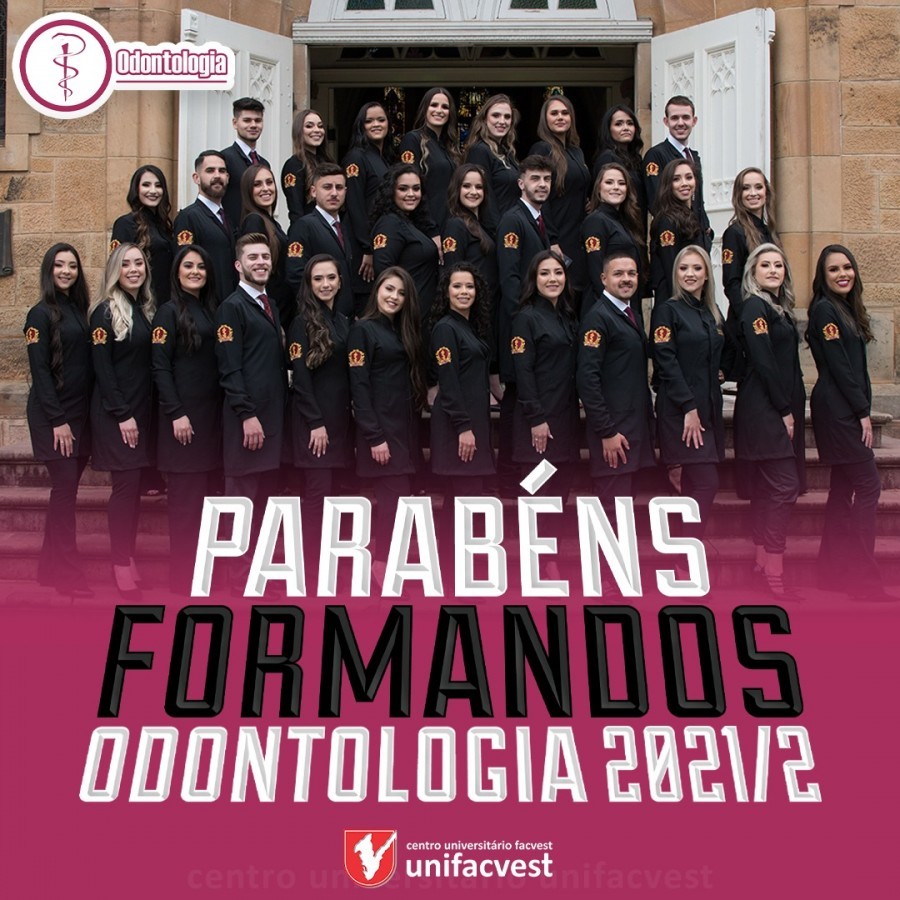 A formatura da turma de Odontologia 2021/2 acontece hoje (2/4). A Unifacvest sentindo-se feliz em fazer parte dessa história, parabeniza a todos e deseja sucesso! Parabéns formandos