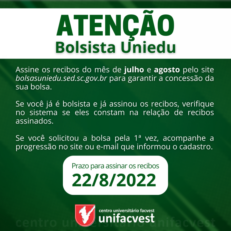 Você precisa assinar os seus recibos imediatamente para garantir a concessão da sua bolsa.