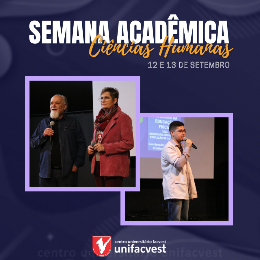 A Semana Acadêmica das Ciências Humanas foi realizada nas noites de 12 e 13 de setembro, no Teatro da Unifacvest e reuniu os acadêmicos dos cursos de Educação Especial, Educação Física, Letras-Inglês, Pedagogia e dos cursos novos Pedagogia Anos Iniciais e Tecnologia Educacional.