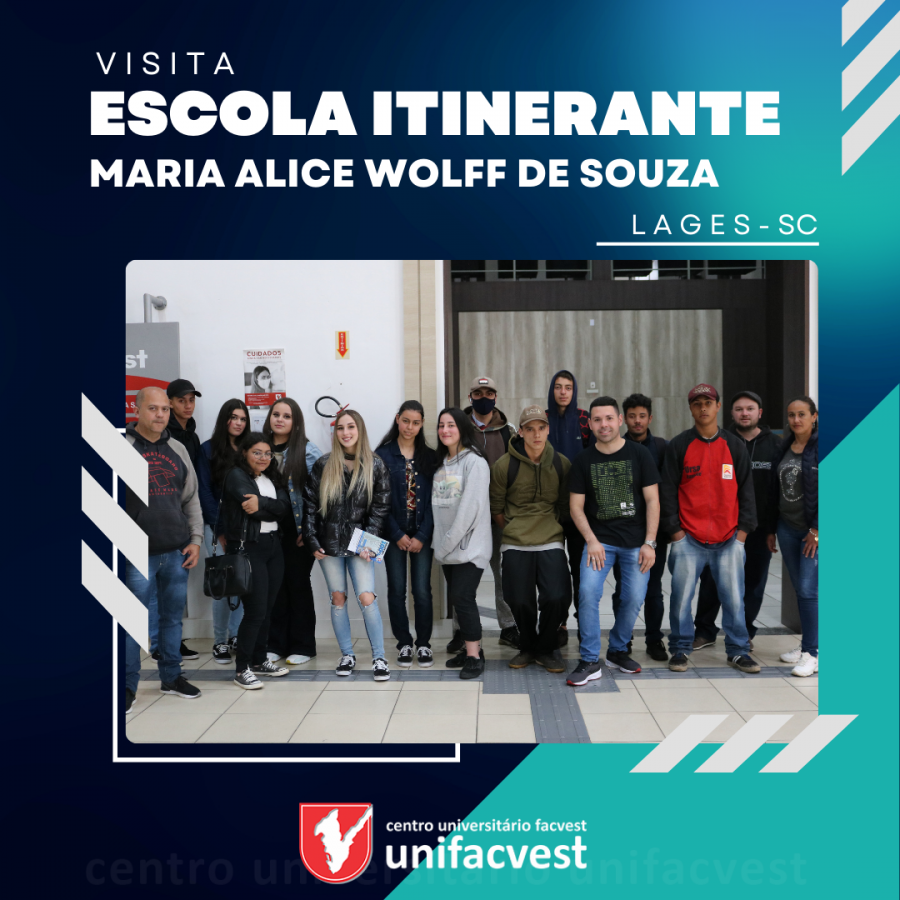 Os alunos da Escola Itinerante Maria Alice Wolff de Souza, de Lages-SC, visitaram a Unifacvest no dia 16 de setembro. Acompanhados dos funcionários, técnicos e professores da Instituição, os alunos conheceram a estrutura do Campus Central, laboratórios e Casa da Cidadania. As visitas na Unifacvest tem como objetivo, fazer com que os alunos tenham contato com os cursos que pretendem ingressar, além de tirar as dúvidas sobre o curso superior.