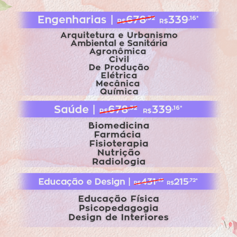 50% de desconto nos cursos de engenharias e saúde EAD.