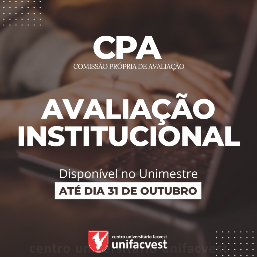 Para que serve a Avaliação Institucional? A CPA (Comissão Própria de Avaliação), ouve a comunidade universitária cuja finalidade é compreender, perceber, avaliar e promover ações de melhorias necessárias a partir das demandas dos resultados obtidos. Não perca o prazo de avaliar o que temos feito e sugerir no que podemos melhorar.