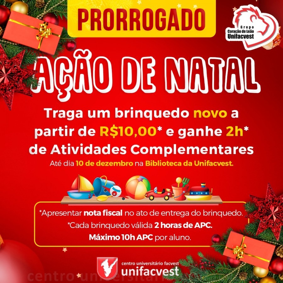Traga um brinquedo novo a partir de R$10,00* e ganhe 2h* de Atividades Complementares.