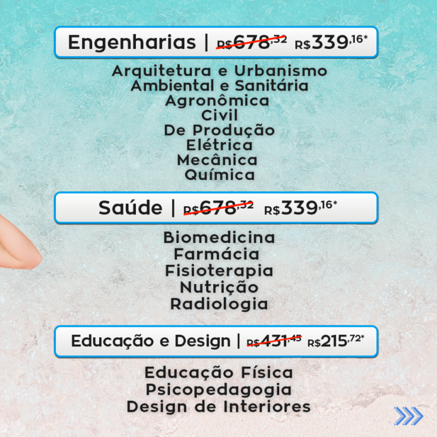 50% de desconto nos cursos de engenharias e saúde EAD.