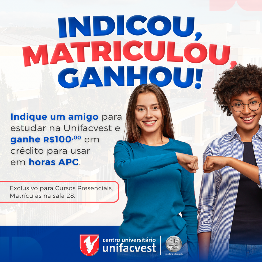 Acompanhe seu amigo para fazer a matrícula em um dos nossos cursos presencias na sala 28 da Unifacvest e ganhe crédito de R$ 100,00 em horas APC. O seu amigo pode ter bolsa de até 100% pelo #Uniedu.