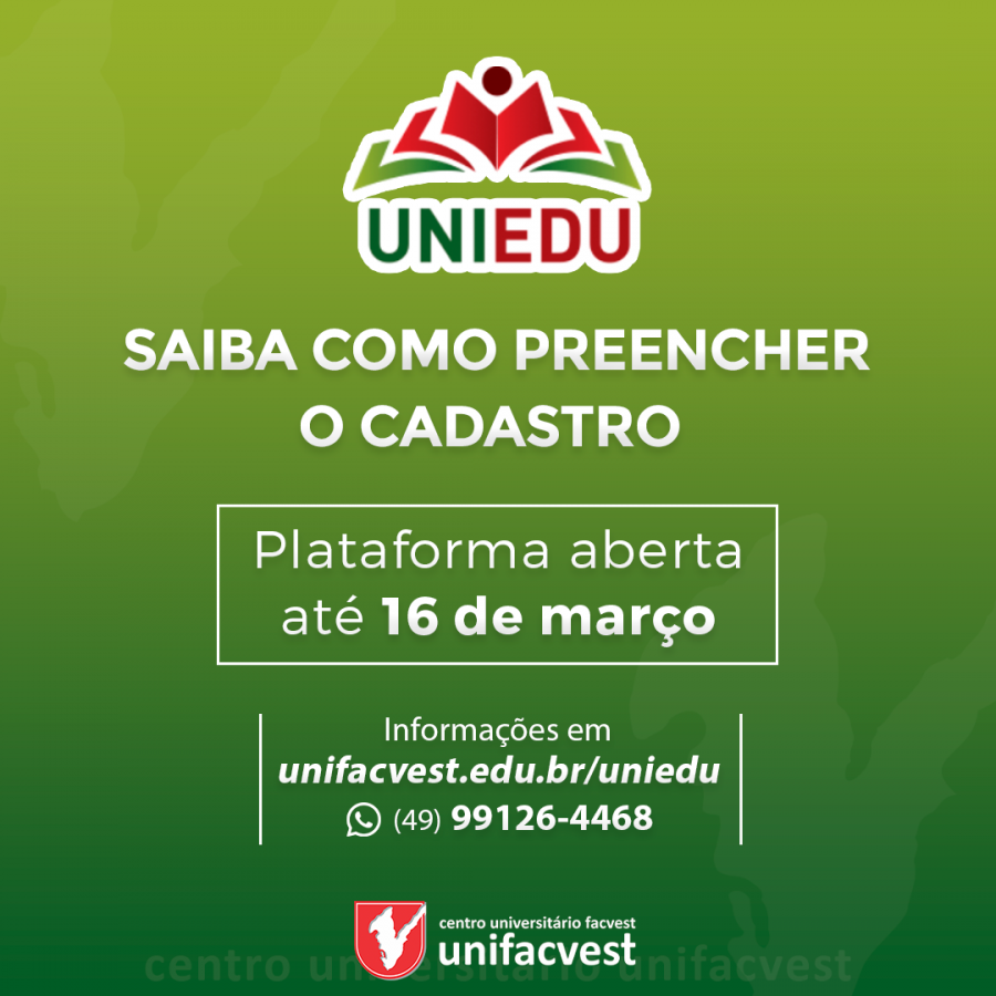 Saiba como preencher o seu cadastro/recadastro no #Uniedu acessando unifacvest.edu.br/uniedu.