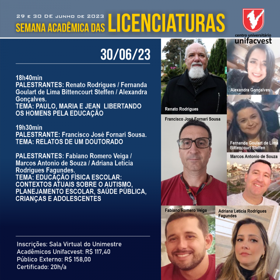 Inscrições na Sala Virtual do Unimestre. Se você não tem acesso ao Unimestre, faça a sua inscrição aqui!