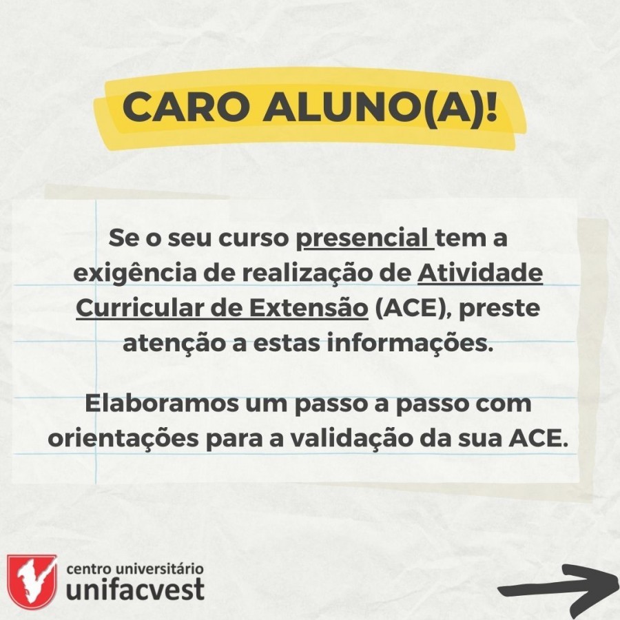 A Atividade Curricular de Extensão (ACE) consiste em uma ação socioeducativa realizada com o objetivo de promover a sensibilização para a importância dos conhecimentos aprendidos na área de sua formação acadêmica.