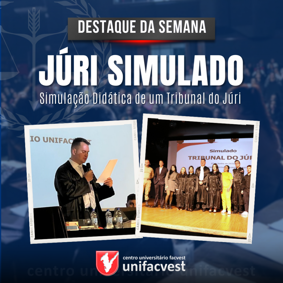A Simulação Didática do Tribunal do Júri foi o destaque da semana na Unifacvest. Os acadêmicos assumiram os diferentes papéis de um caso real através de uma atividade didática que tem por finalidade o desenvolvimento de competências, habilidades e atitudes na formação do bacherel em Direito.