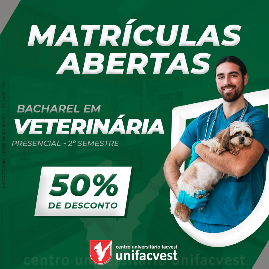 A Unifacvest está com matrículas abertas para os cursos presenciais de Direito, Enfermagem, Odontologia e Veterinária para o semestre 2023/2.