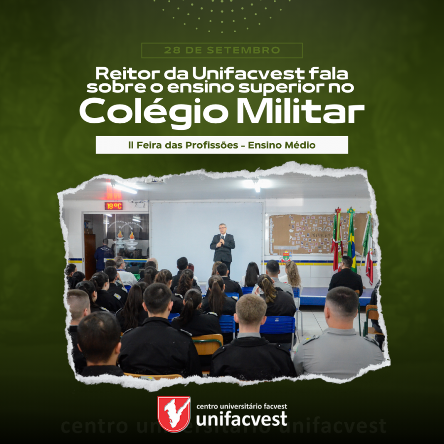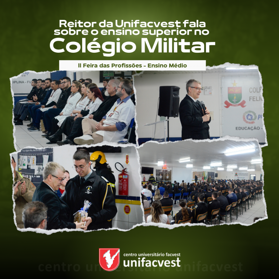 O Reitor do Centro Universitário Facvest – Unifacvest, Prof. Dr. Geovani Broering, esteve na manhã da quinta-feira, 28, no Colégio Policial Militar Feliciano Nunes Pires - CFNP, unidade Lages (SC), para proferir a palestra de abertura da II Feira das Profissões abordando o Ensino Superior na Serra Catarinense. O convite foi feito pelo Major PM Comandante do CFNP Rodrigo Standlober Pedroso.