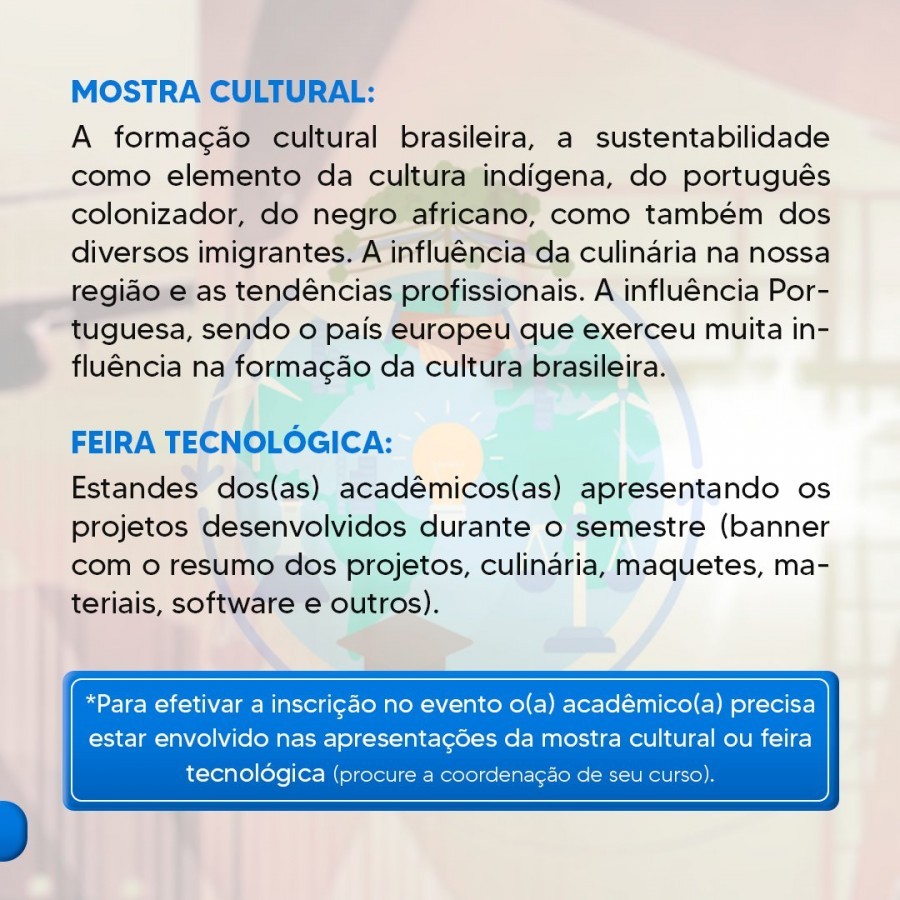 Participe da Mostra Cultural e Feira Tecnológica da Unifacvest - Desenvolvimento Regional