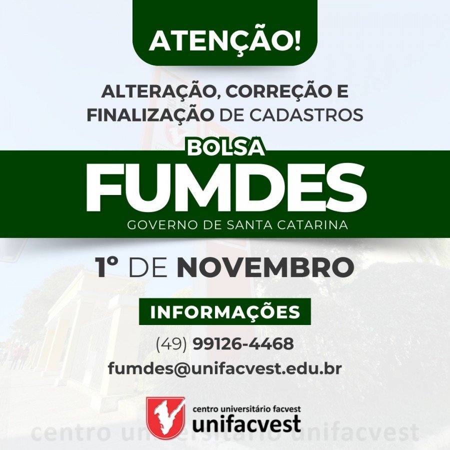 Atenção acadêmicos que efetuaram o cadastro na Bolsa FUMDES do Governo de Santa Catarina.