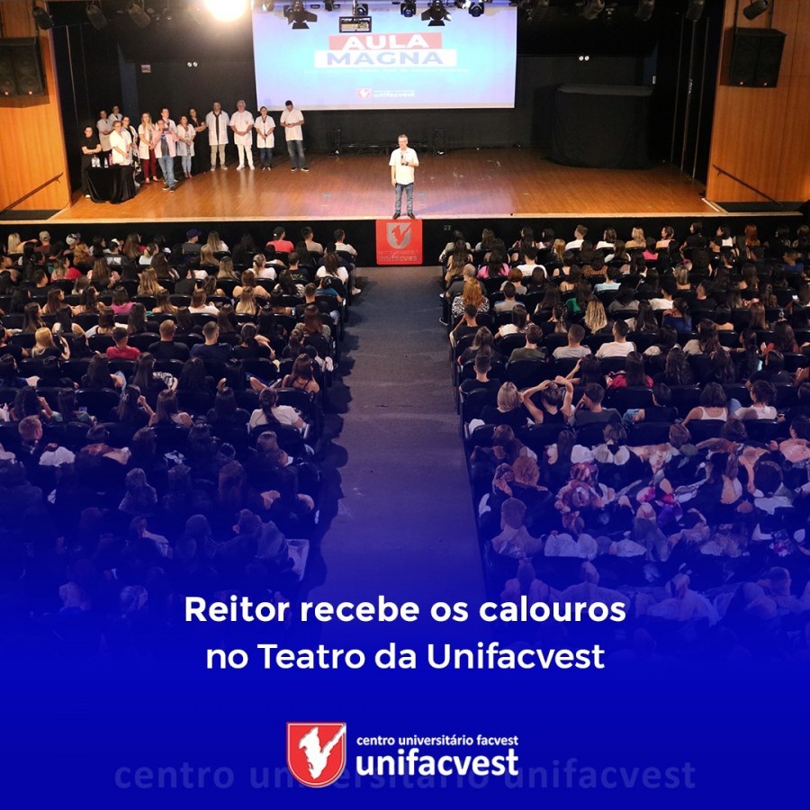 A segunda-feira, 18/03, foi memorável e marca o início das aulas para os calouros no Centro Universitário Facvest - Unifacvest. O Reitor, Prof. Dr. Geovani Broering, recebeu os novos acadêmicos no Teatro da Unifacvest proferindo a Aula Magna que foi realizada para três grupos em horários distintos. O primeiro grupo às 8h30, marcando o início dos cursos matutinos de Direito, Medicina Veterinária e Odontologia. Biomedicina e Farmácia no matutino iniciarão as aulas em 2 de abril. O segundo grupo teve a Aula Magna às 19h e o terceiro grupo às 20h30 com todos os Cursos da área da saúde. O Reitor destacou as aprendizagens diferenciadas que são oportunizadas com os investimentos tecnológicos que só a Unifacvest oferece. O Reitor esteve acompanhado da Vice-Reitora e Pró-Reitora de Administração e Finanças, Soraya Lemos Erpen Broering, do Pró-Reitor Acadêmico, Ricardo Leone Martins, do Pró-Reitor de Pesquisa e Extensão, Renato Rodrigues, dos Coordenadores de Cursos e Programas e Corpo Docente.