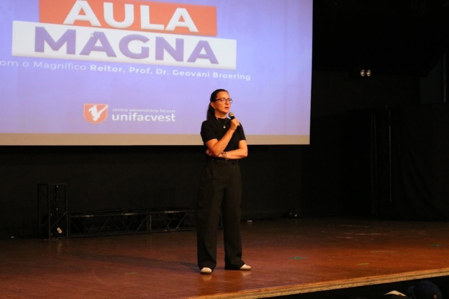 Na Aula Magna apresentou a estrutura universitária, através de um vídeo institucional, bem como explicou sobre as atividades desenvolvidas e a alta qualificação dos cursos oferecidos em um dos melhores Centros Universitários do Brasil. Ressaltou o compromisso da Unifacvest em construir uma educação de alta qualidade para entregar à sociedade profissionais altamente qualificados. Concluiu afirmando que a Unifacvest não é uma universidade comunitária, mas uma universidade para a comunidade, garantindo o acesso para todos, indistintamente.