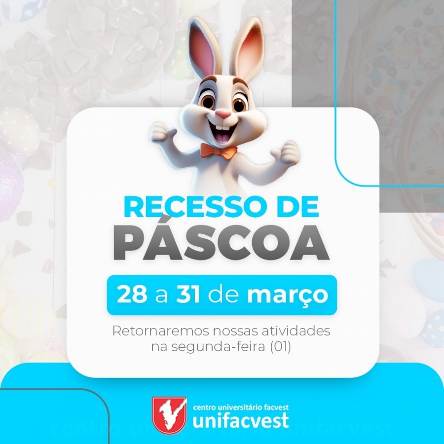 O Recesso de Páscoa será de 28 a 31 de março. O retorno das atividades acontece na segunda, dia primeiro.