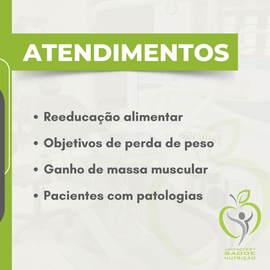 A Clínica Escola de Nutrição do Unifacvest Saúde está esperando você com os melhores profissionais. Os nossos professores, mestres e doutores, orientam as práticas clínicas integradas aos estágios curriculares supervisionados nos três períodos.