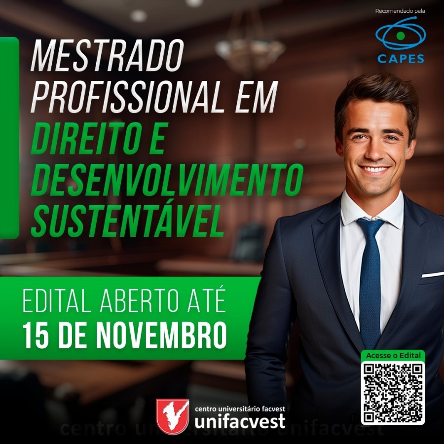 O Curso de Mestrado Profissional em Direito e Desenvolvimento Sustentável está com Edital Aberto para inscrições até 15 de novembro.