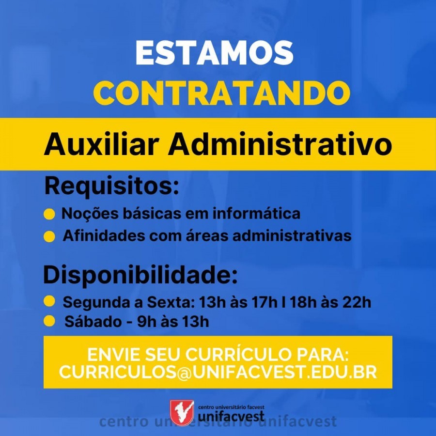 Informações somente pelo e-mail curriculos@unifacvest.edu.br