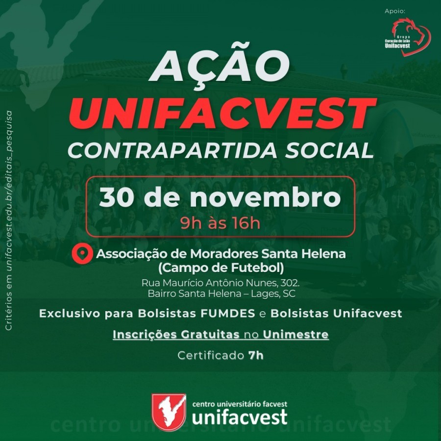 Inscrições abertas no Unimestre. Exclusivo para Bolsistas FUMDES e acadêmicos com Bolsa de Estudo Própria da Unifacvest - BEP. Programa, formulários e informações aqui.