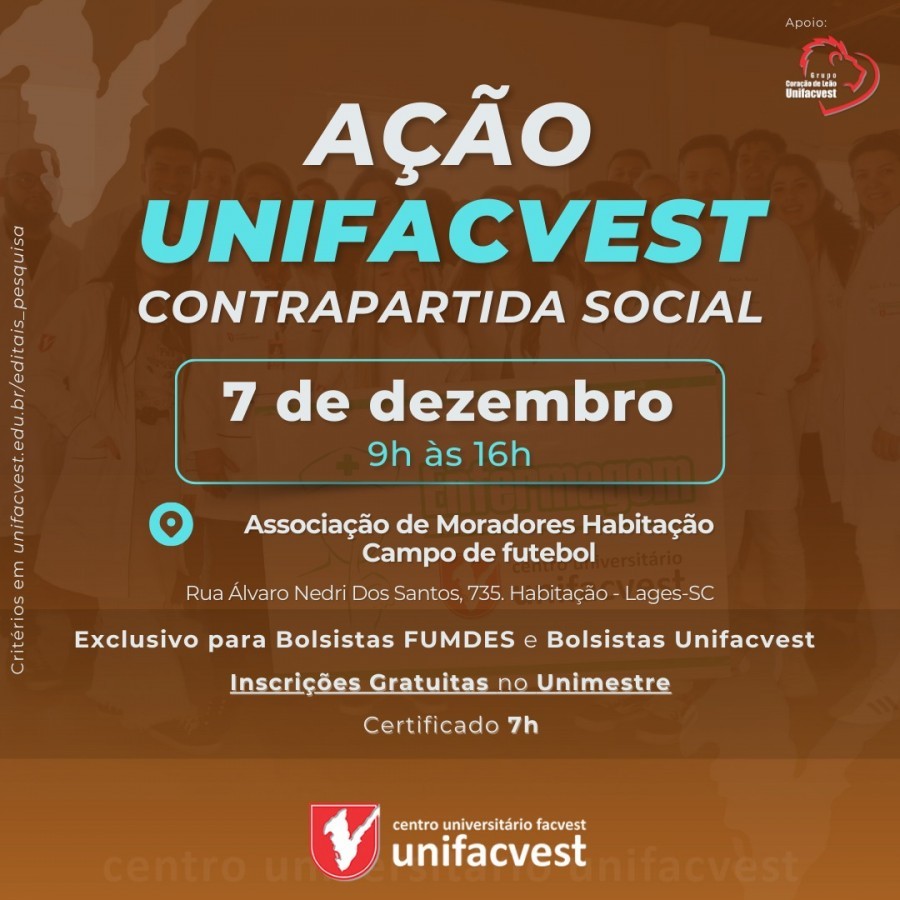 Inscrições abertas no Unimestre. Exclusivo para Bolsistas FUMDES e acadêmicos com Bolsa de Estudo Própria da Unifacvest - BEP. Programa, formulários e informações neste link.