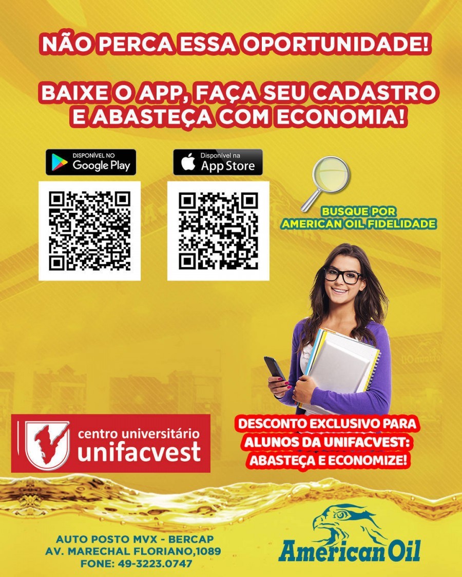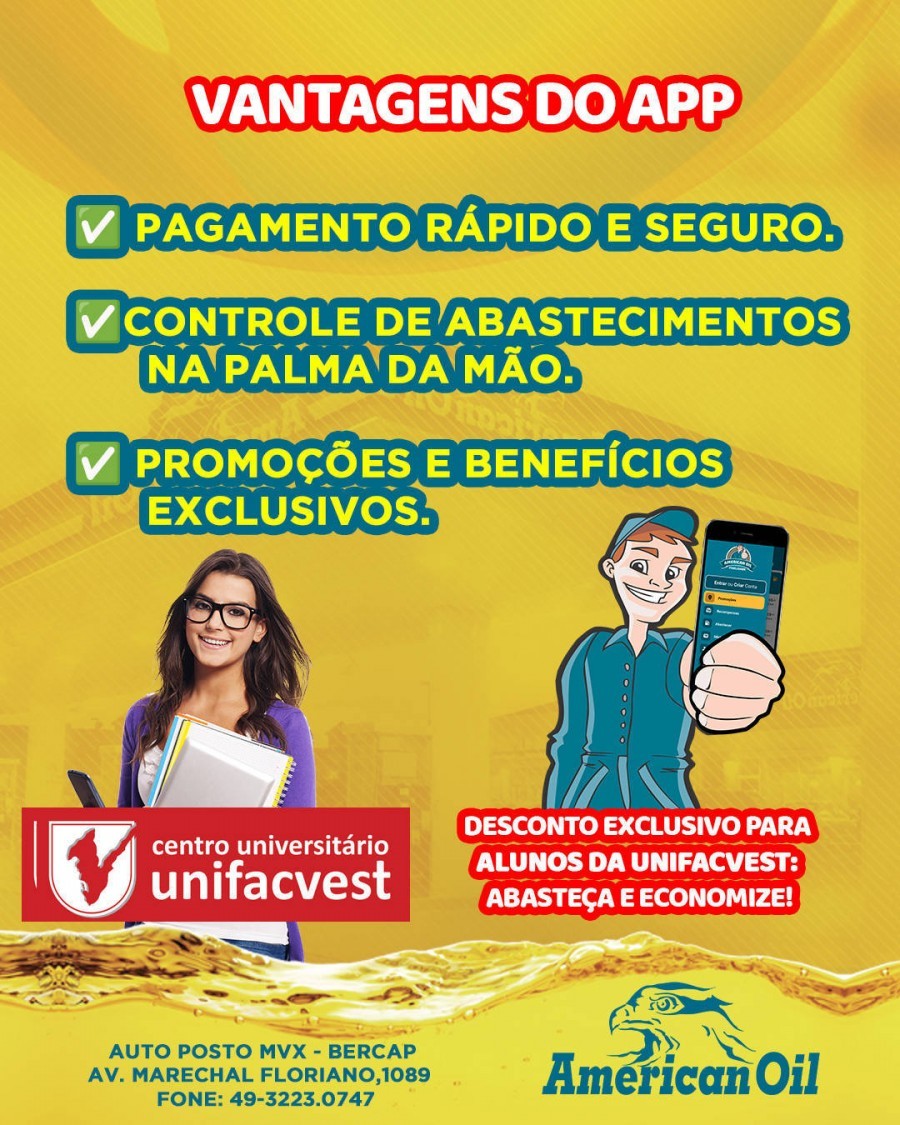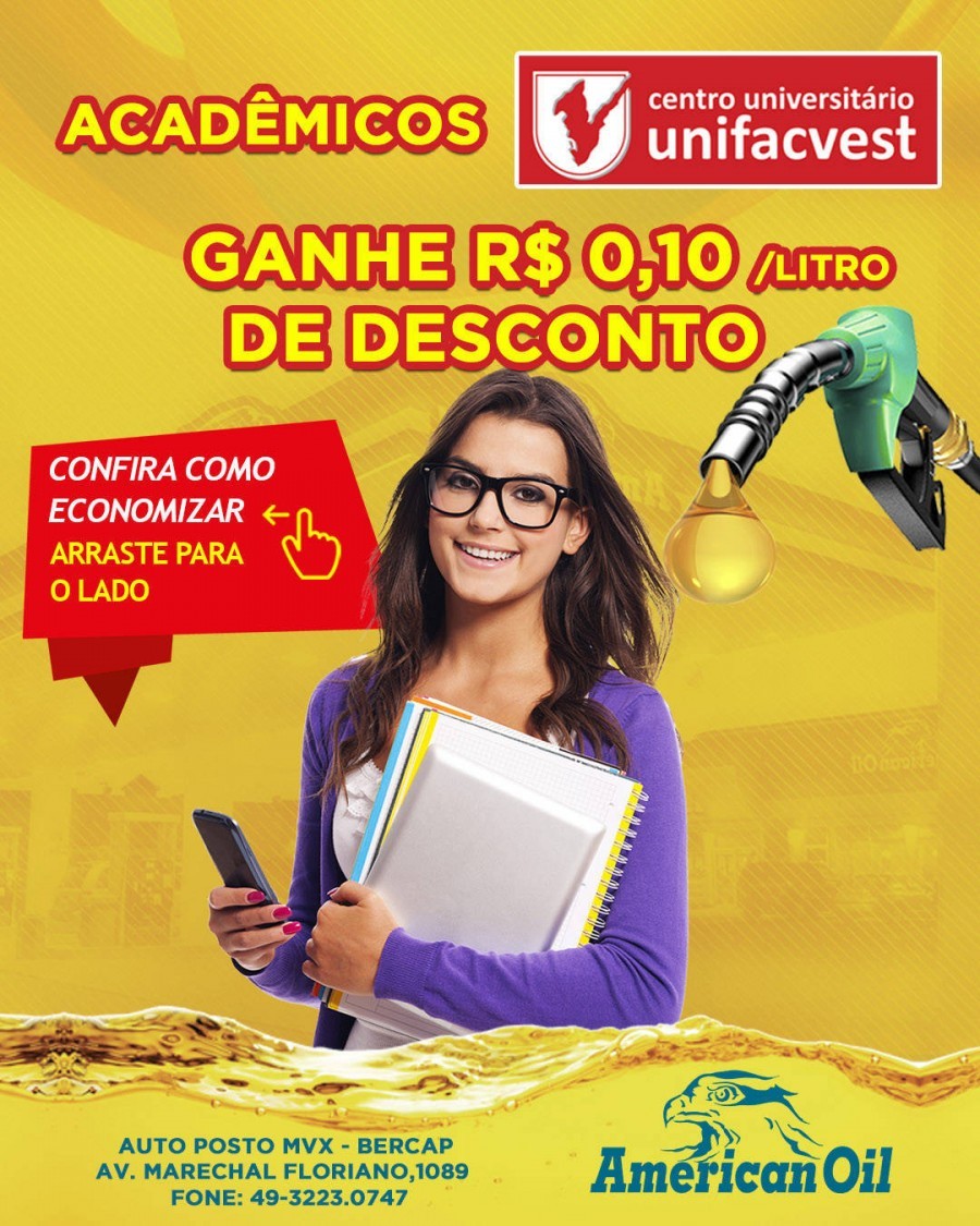 Oferta para acadêmicos com matrícula ativa, docentes e colaboradores da Unifacvest em toda a Rede @americanoildistribuidora
