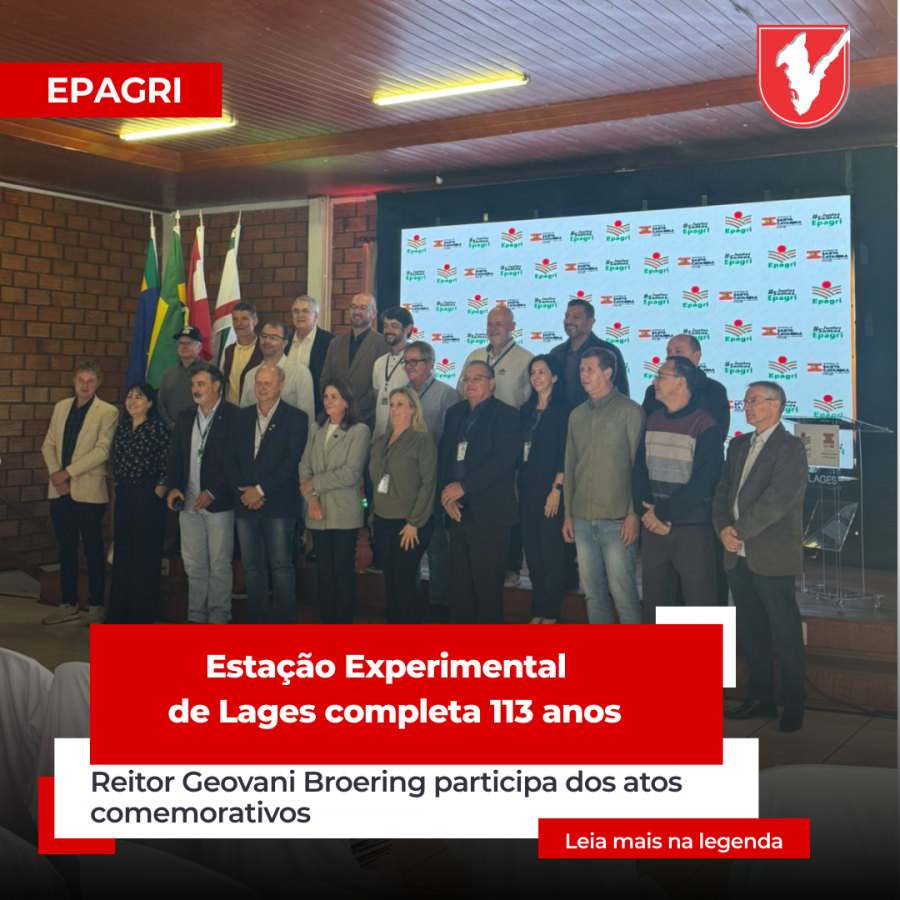 O Reitor da Unifacvest, Geovani Broering, participou dos atos comemorativos aos 113 anos da instalação da EPAGRI em Lages, na manhã desta sexta-feira, 9 de maio. As pesquisas desenvolvidas pela EPAGRI de caráter agropecuário e de extensão rural contribuem para o desenvolvimento regional sustentável.