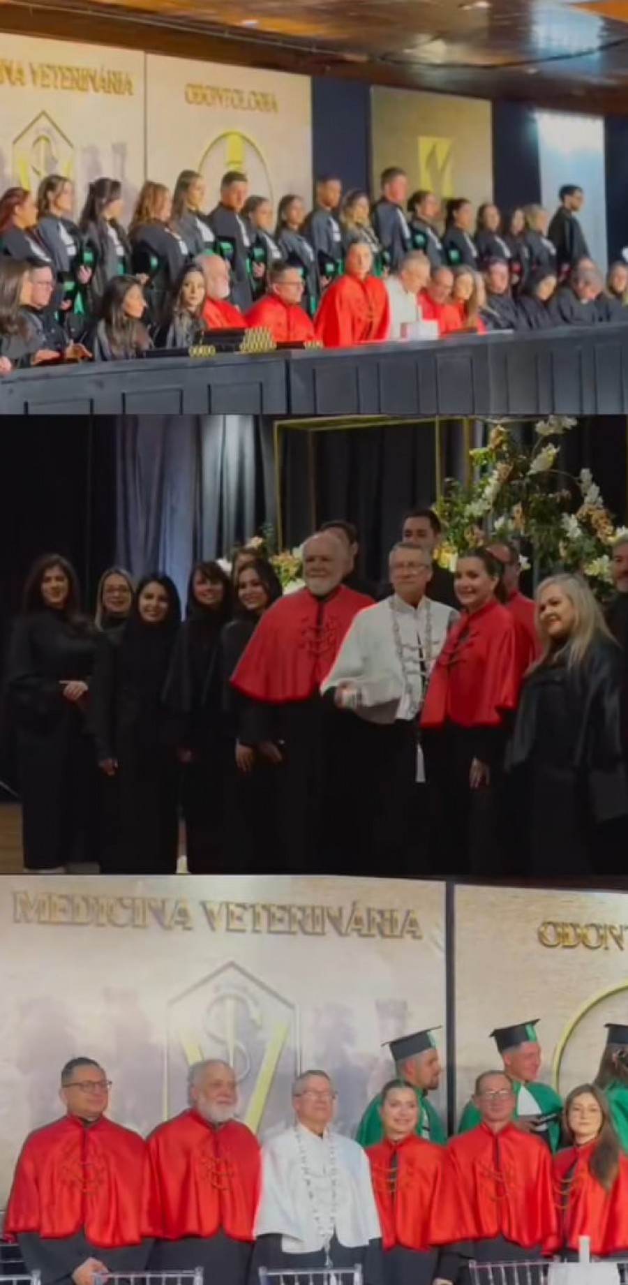 Estavam presentes os Coordenadores dos Cursos de Ciências Contábeis, Amanda Miranda Silva, também Paraninfa, de Medicina Veterinária, Deisy Andrade Padilha Arruda e de Odontologia, Lessandro Machry.