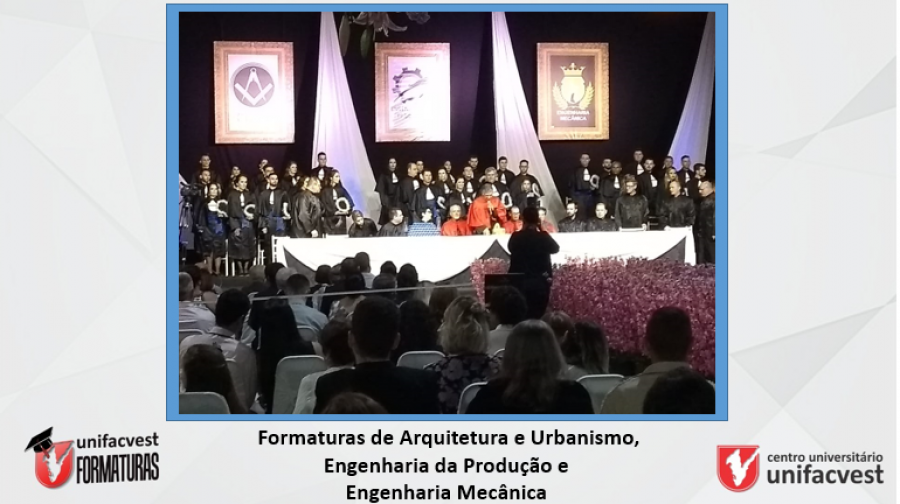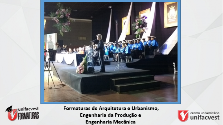 Nos links abaixo os vídeos dos principais momentos da Formatura dos Cursos de Arquitetura e Urbanismo, Engenharia da Produção e Engenharia Mecânica do Centro Universitário Unifacvest em Lages (SC).