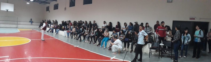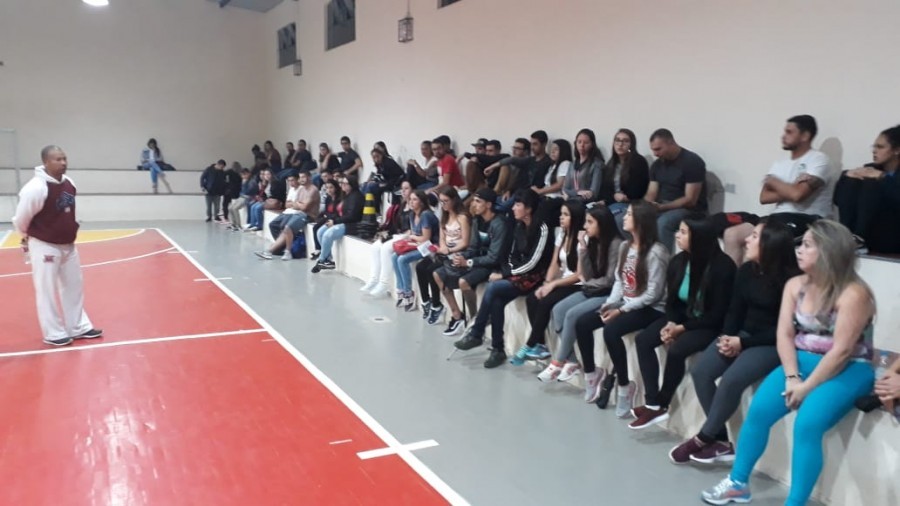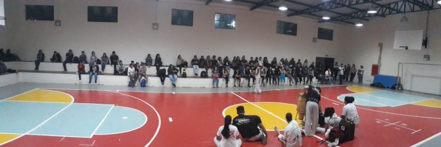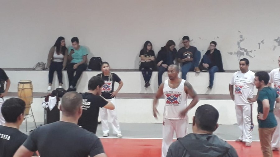 As lutas genuinamente brasileiras são o destaque da atividade elaborada pelo mestre de capoeira Silvio da Luz Moreira na segunda noite da Semana Acadêmica de Educação Física da Unifacvest, no Ginásio de Esportes 2, no Bloco C, campus central em Lages (SC).
