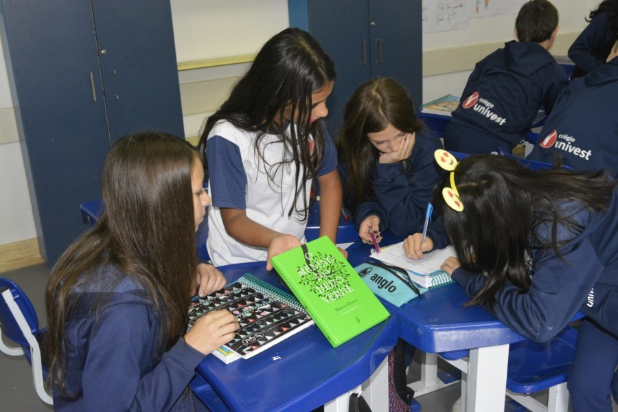 Todos os alunos leram o livro, e posteriormente formaram grupos para responder perguntas.