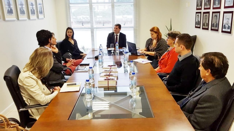 Estiveram presentes: Professoras Dilsa Mondaro, Viviane Grassi, o professor Felipe Fert, o juiz Fernando Castro Faria e a coordenadora Anne Elise da Silva.