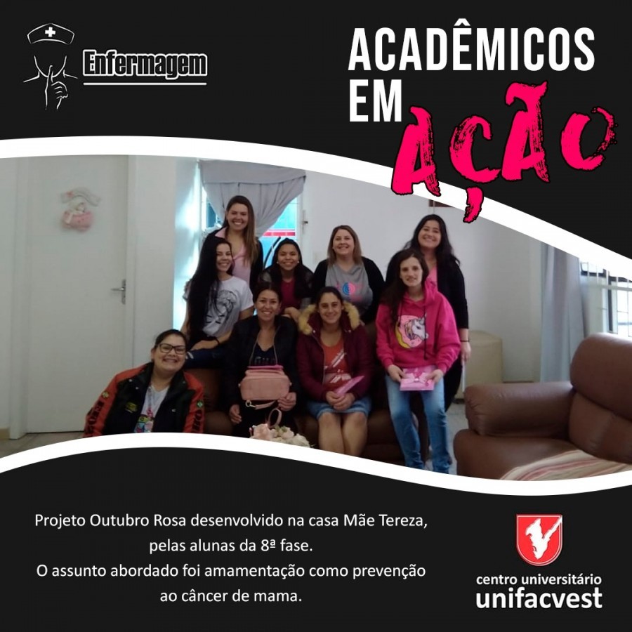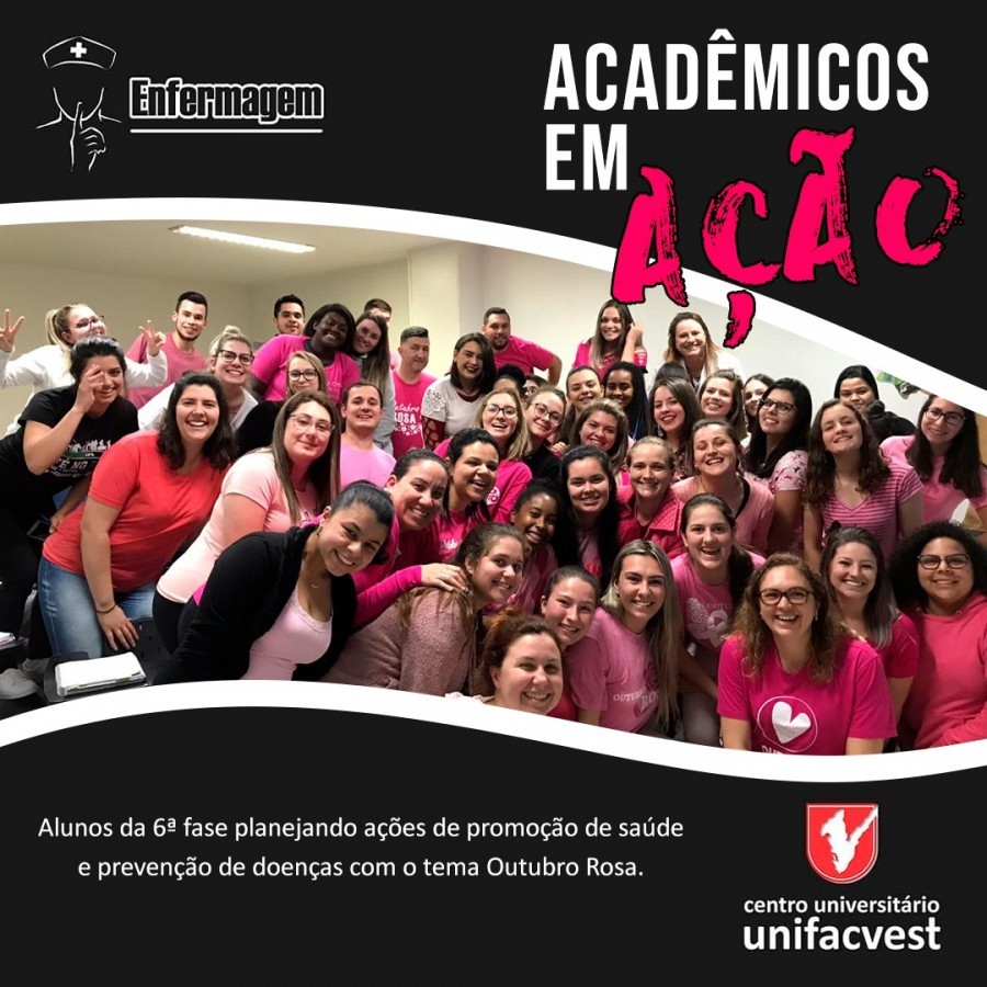 Os acadêmicos do Curso de Enfermagem da Unifacvest estão desenvolvendo várias ações relacionadas ao Outubro Rosa - mês de prevenção ao câncer de mama e à saúde da mulher. Confira nas fotos.