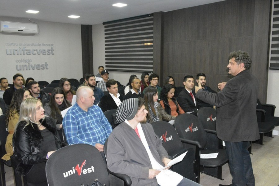 Os acadêmicos da 4ª fase de Direito do Centro Universitário Unifacvest mergulharam em um dos temas mais complexos e instigantes do sistema jurídico. Na sexta-feira (23), eles assistiram a uma palestra sobre Ação Civil Pública, ministrada pelo Promotor de Justiça Neori Rafael Krahl.