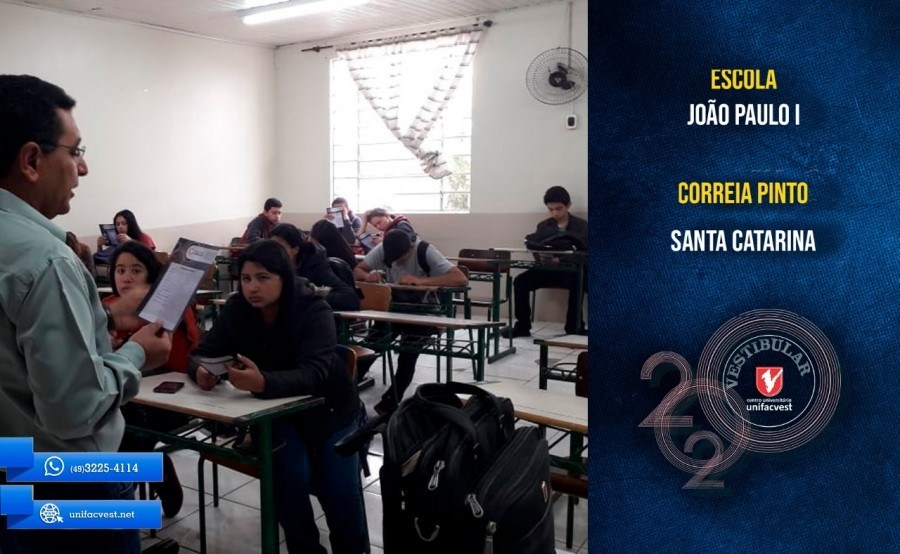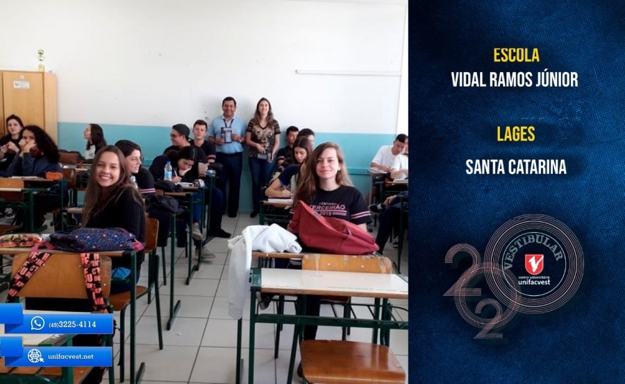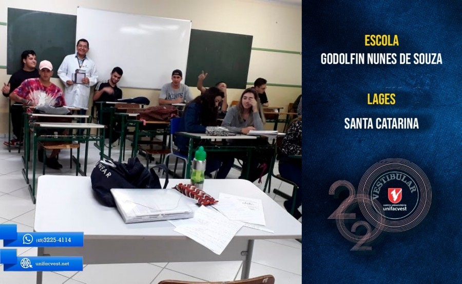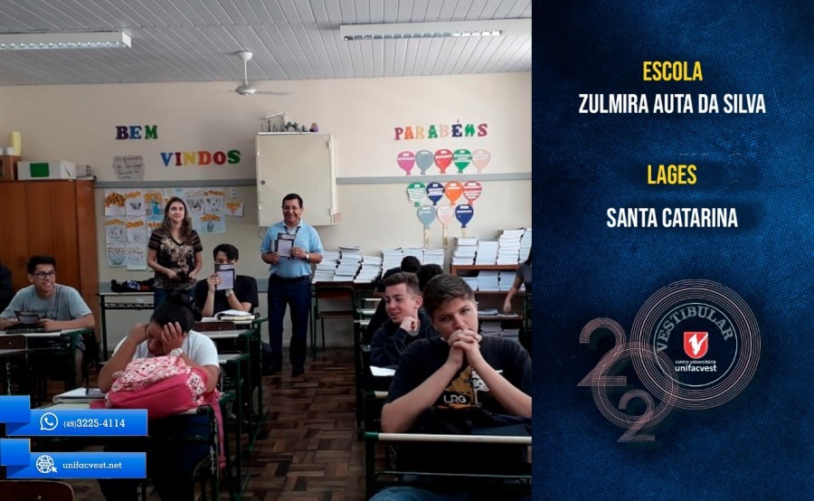 Os professores e coordenadores dos cursos de graduação da Unifacvest estão visitando as escolas da região de Lages e apresentando os cursos e as bolsas de estudos para os alunos. Saiba tudo sobre o Vestibular de Verão 2020 https://www.unifacvest.net/curso-extra/81/vestibular-de-verao-2020-confira-o-edital-com-cursos-datas-e-valores-dos-cursos