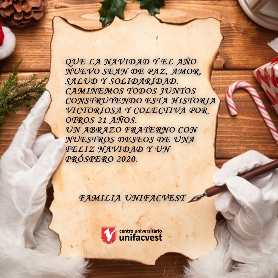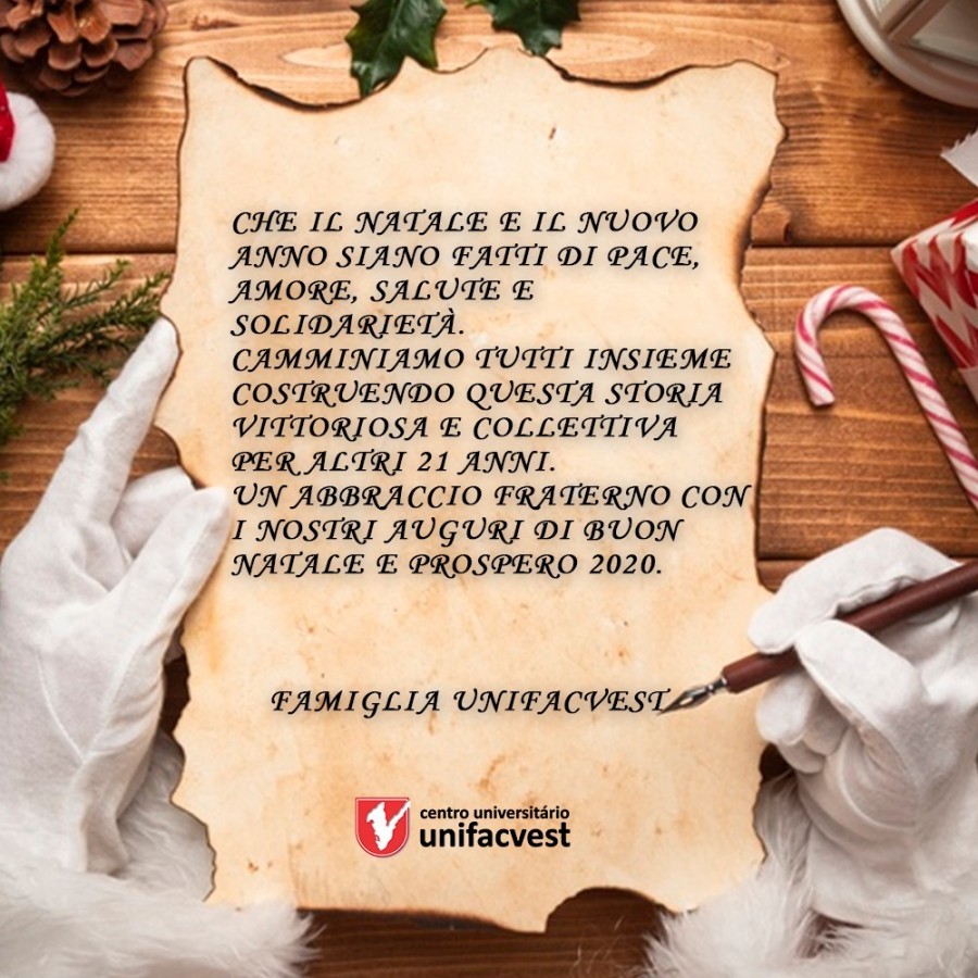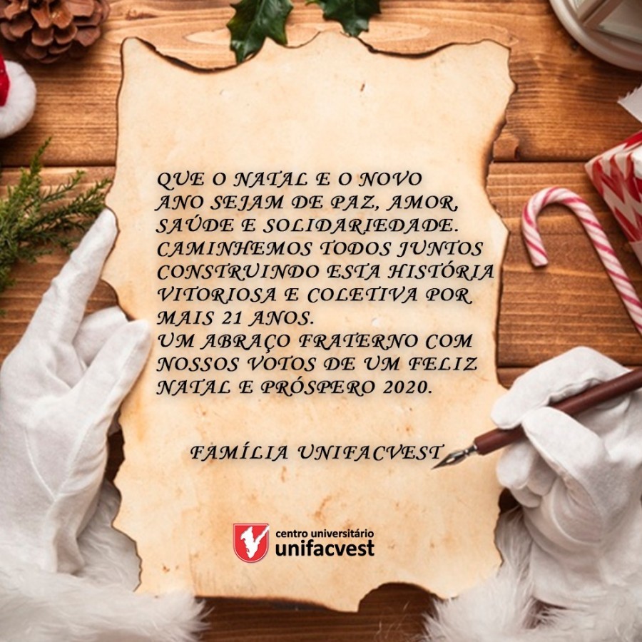 Que o Natal e o Novo Ano sejam de Paz, Amor, Saúde e Solidariedade. Caminhemos todos juntos construindo esta história vitoriosa e coletiva por mais 21 anos. Um abraço fraterno com nossos votos de um Feliz Natal e próspero 2020.