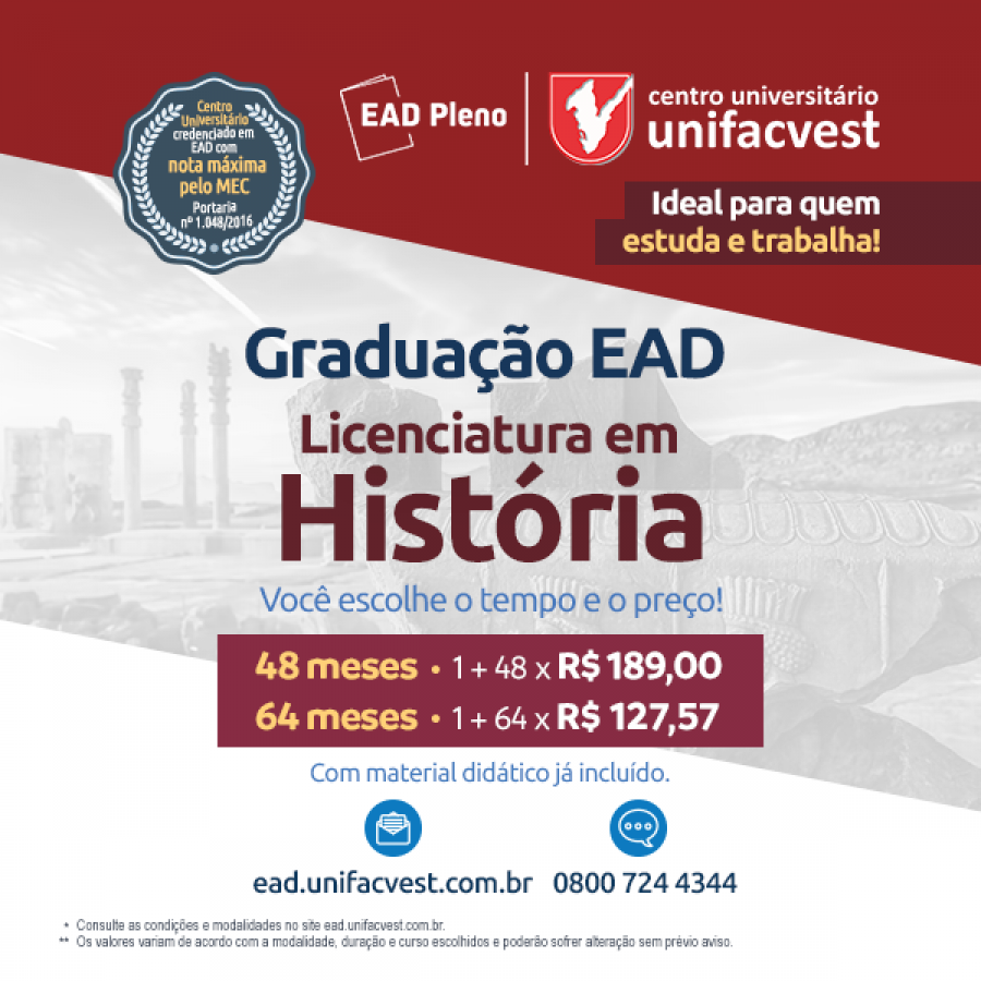 Conheça mais sobre o nosso curso de Licenciatura em História: https://tinyurl.com/y4tfkshk
