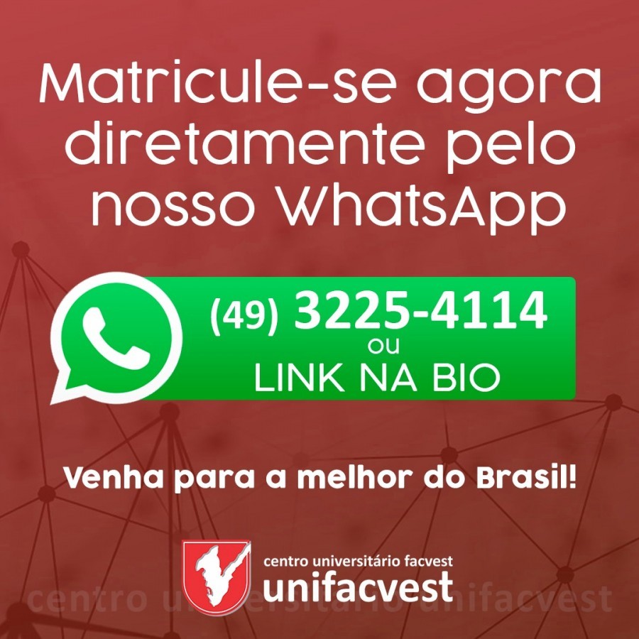 Tá de quarentena? Continue em casa nessa batalha pela vida. Aproveite e invista em você. Faça já a sua matrícula para os cursos presenciais da Unifacvest através do nosso Whatsapp https://wa.me/554932254114